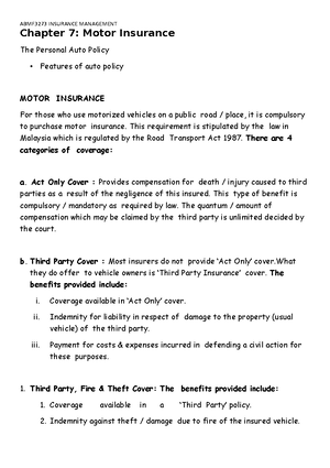 Chapter 7 Insurance Management Year 2 Sem 3 Chapter 7 Motor Insurance The Personal Auto Policy Studocu